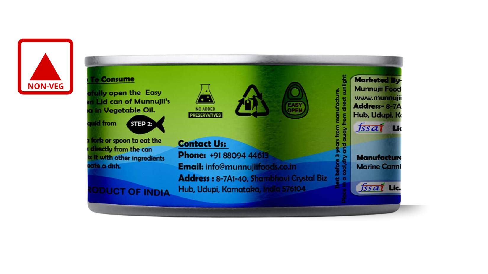 Munnujii Canned Tuna Flakes in Vegetable Oil 160g are a protein-packed and Omega-3 rich seafood option, made from premium-quality tuna preserved in pure vegetable oil for natural taste and freshness. A wholesome source of Vitamin D, Calcium, and Iron, this ready-to-eat tuna is perfect for quick meals, salads, sandwiches, pasta, or rice dishes. With a convenient 160g can, it offers balanced nutrition and a delicious way to enjoy healthy seafood anytime.