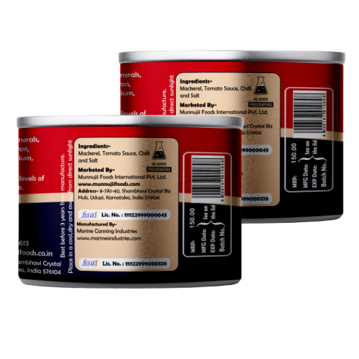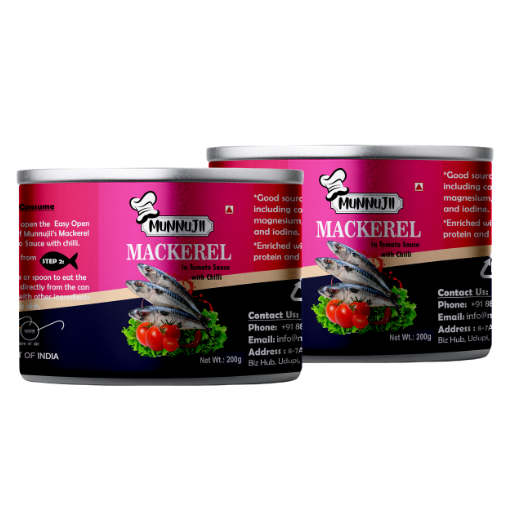 Introducing Munnujii canned Mackerel in tomato sauce with chilli. Packed with premium-quality Mackerel, the rich tomato sauce adds a tangy zest, while the chilli spice adds a delightful kick. Indulge in this delectable fusion, perfect for adding a burst of flavour to your meals. Munnujii, your tastebuds new best friend!