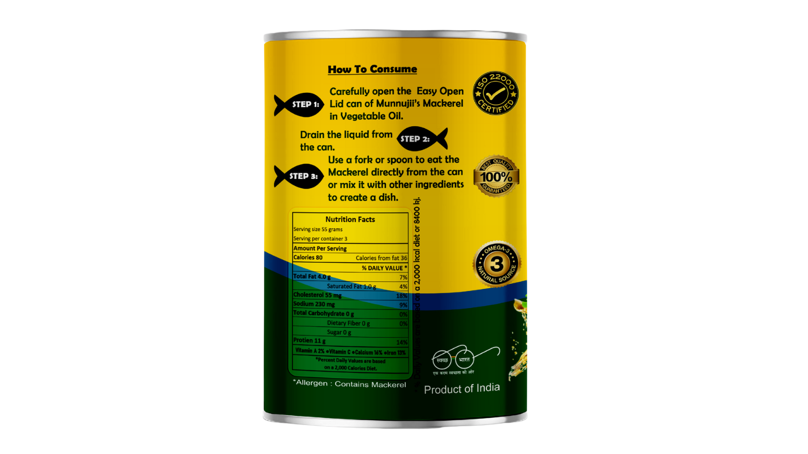 ·         CONVENIENT PACKAGING: Features an easy-open can design for quick and hassle-free access to fresh Mackerel in Vegetable Oil