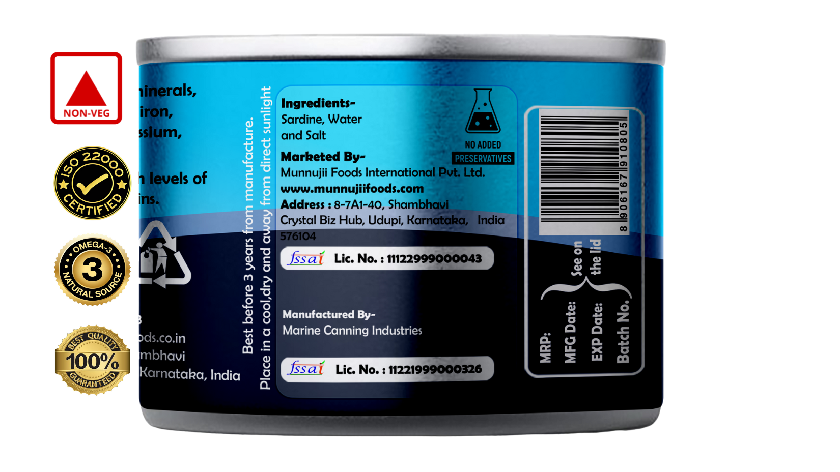 Item Type Name Munnujii Canned Sardine In Brine 200g