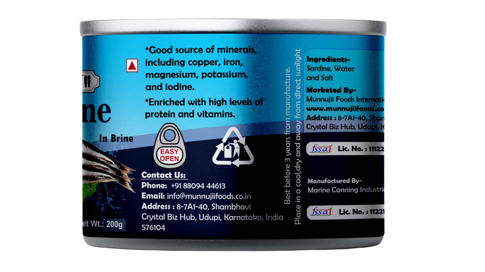 · Nutrient-Rich Sardines: Munnujii Canned Sardines in Brine 200g are packed with lean protein and Omega-3 fatty acids, essential for heart, brain, and overall health.