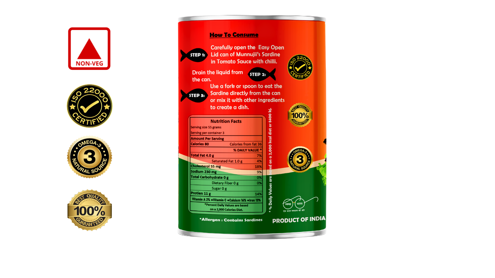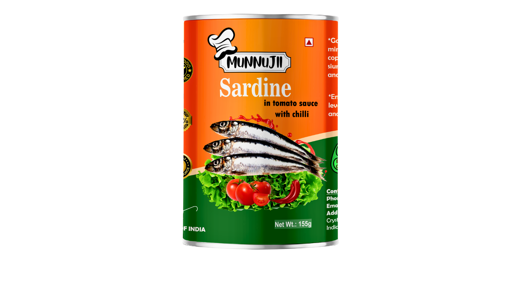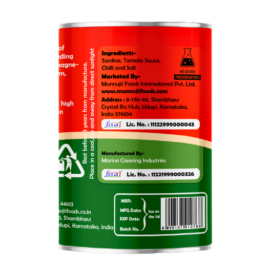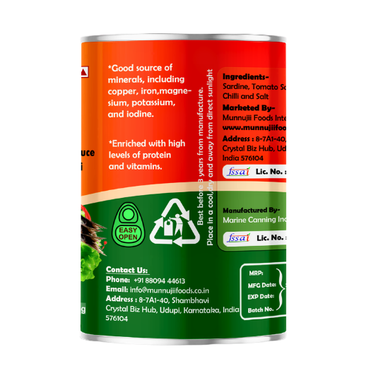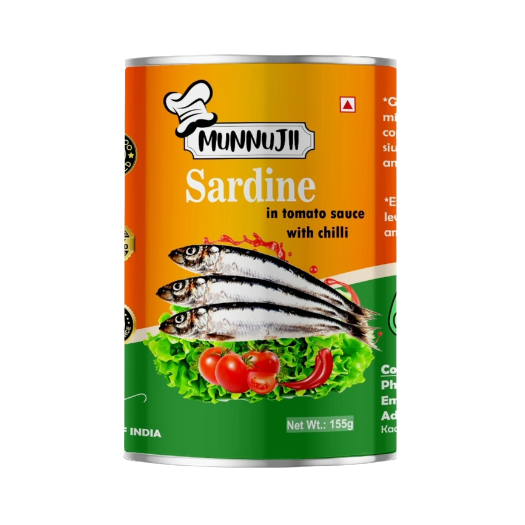 Bring the taste of the ocean to your plate with Munnujii Sardine in Tomato Sauce with Chilli, 155g. Made from carefully selected premium sardines, this ready-to-eat delicacy is blended with a rich tomato sauce and a hint of chilli for that perfect spicy kick. Packed with protein, Omega-3 fatty acids, Vitamin D, Calcium, and Iron, it’s not just delicious but also power-packed with essential nutrients.