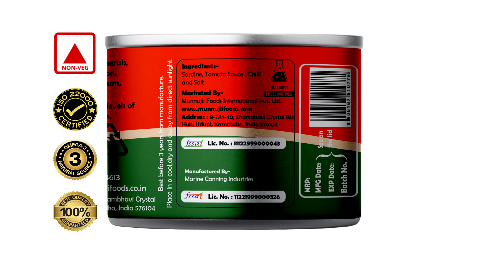 Item Type Name Munnujii Canned Sardine In Tomato Sauce & Chilli 200g