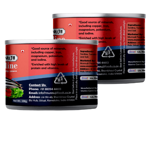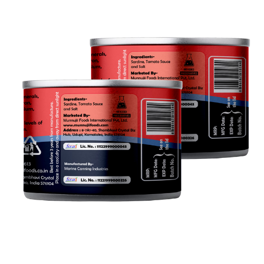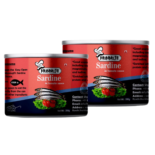 Munnujii Sardine in Tomato Sauce 200g is a wholesome and ready-to-eat canned fish, packed with premium quality sardines in a rich and tangy tomato sauce. High in protein, Omega-3 fatty acids, and essential nutrients, it’s the perfect choice for a quick, healthy meal. This 200g pack offers freshness, convenience, and authentic taste in every bite — enjoy it with rice, bread, pasta, or salads. Hygienically packed and sealed for long shelf life, Munnujii brings you one of the best sardines in tomato sauce in India, making healthy eating simple, delicious, and satisfying.